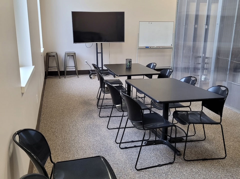 The large second floor meeting room seats 12 people and the rate is $350 for an 8 hour block.